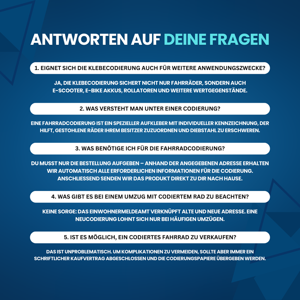 Die Klebecodierung auf deinem Fahrrad trägt einen eindeutigen Zahlencode, der sich bei Bedarf schnell entschlüsseln lässt. So kann die Polizei im Falle eines Diebstahls sofort den rechtmäßigen Eigentümer ermitteln und dein Bike sicherstellen.