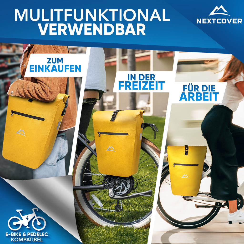 Ganz gleich ob zur Arbeit, beim Fahrrad Ausflug oder zum Einkaufen - Unsere Gepäckträger Tasche ist stets der ideale Begleiter - Mit Reflektoren für höchste Sichtbarkeit.