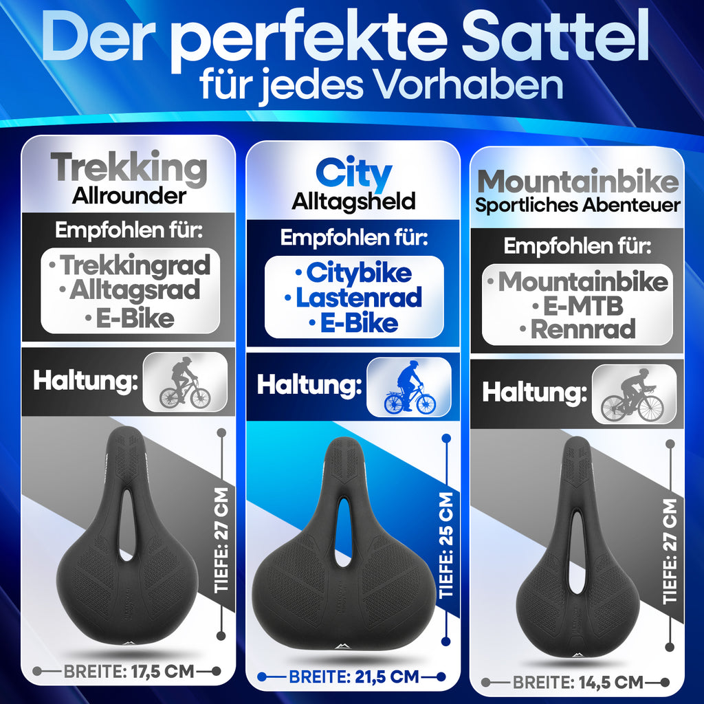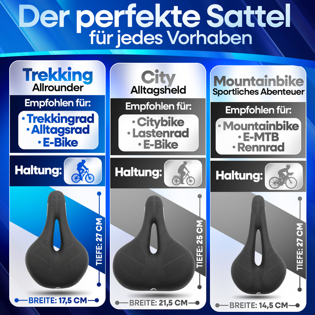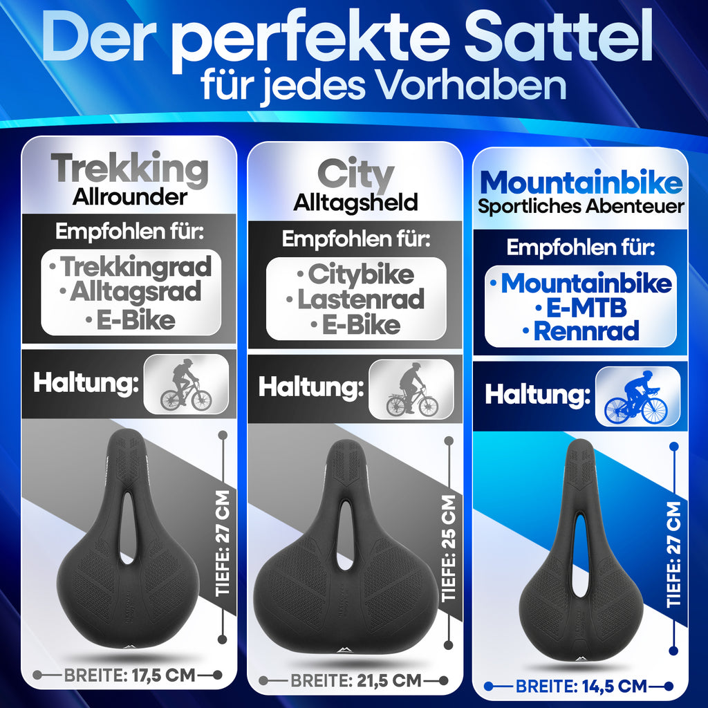 Ob schmal (18–22 cm) oder breit (22–27 cm) – unsere Memory-Foam-Topper bieten dir die perfekte Auflage für individuellen Komfort und optimale Druckverteilung auf jedem Sattel.
