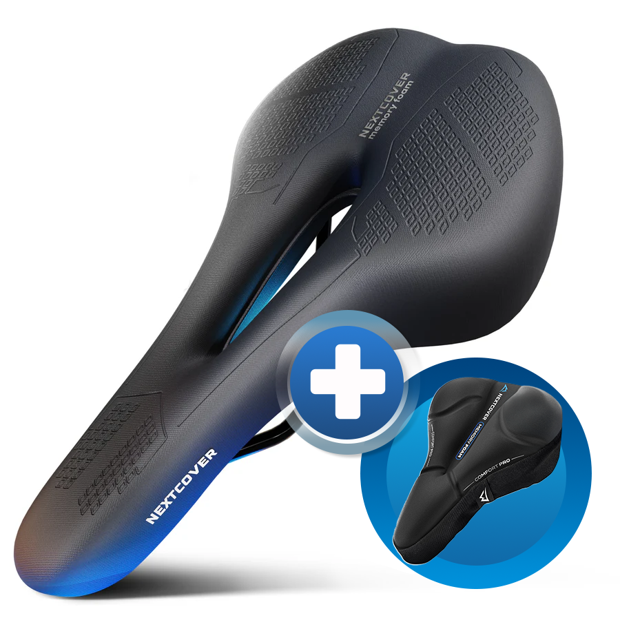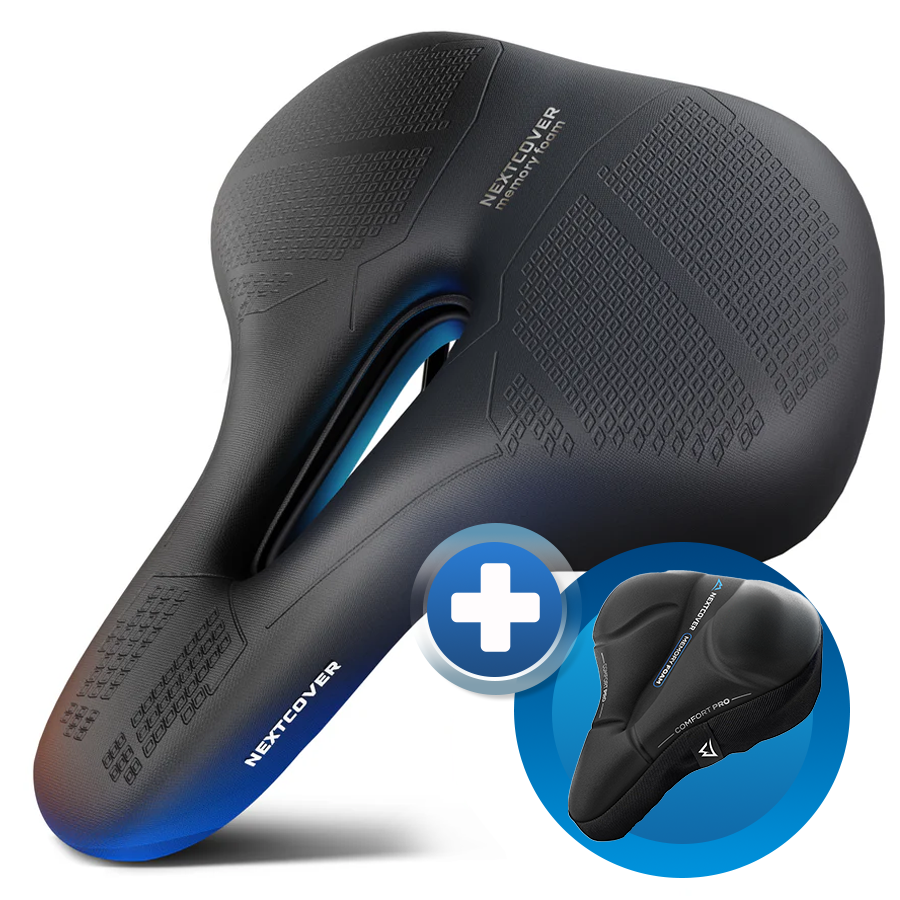 Das Bundle aus dem ComfortOne Fahrradsattel und dem CoverPro Sattelbezug kombiniert ergonomisches Design mit extra weicher Gelpolsterung. Der mehrschichtige Memory Foam 3.0 im Sattel sorgt für optimale Gewichtsverteilung, während der Sattelbezug mit Memory Foam 4.0 zusätzlichen Komfort bei jeder Fahrt bietet.