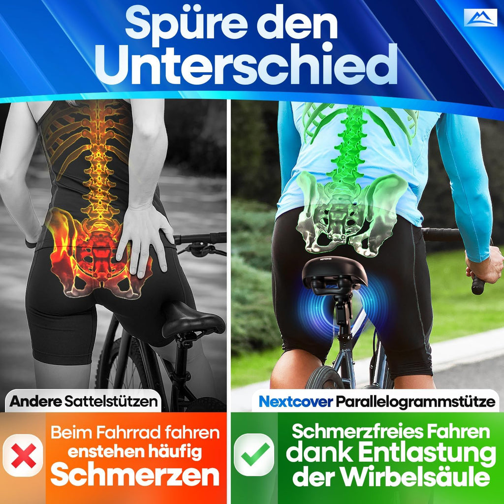 Dank unserer speziell entwickelten Federsattelstütze sorgst du für die perfekte Entlastung deiner Wirbelsäule & fortan für ausschließlich komfortable Fahrten.